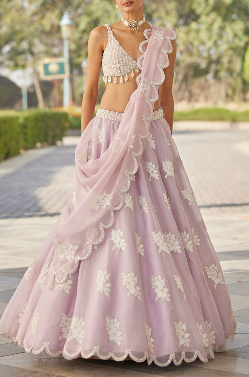 | Product Name | Designer Pearl Embroidered Beautiful Pure Georgette Lehenga In Pastel Lavendar |