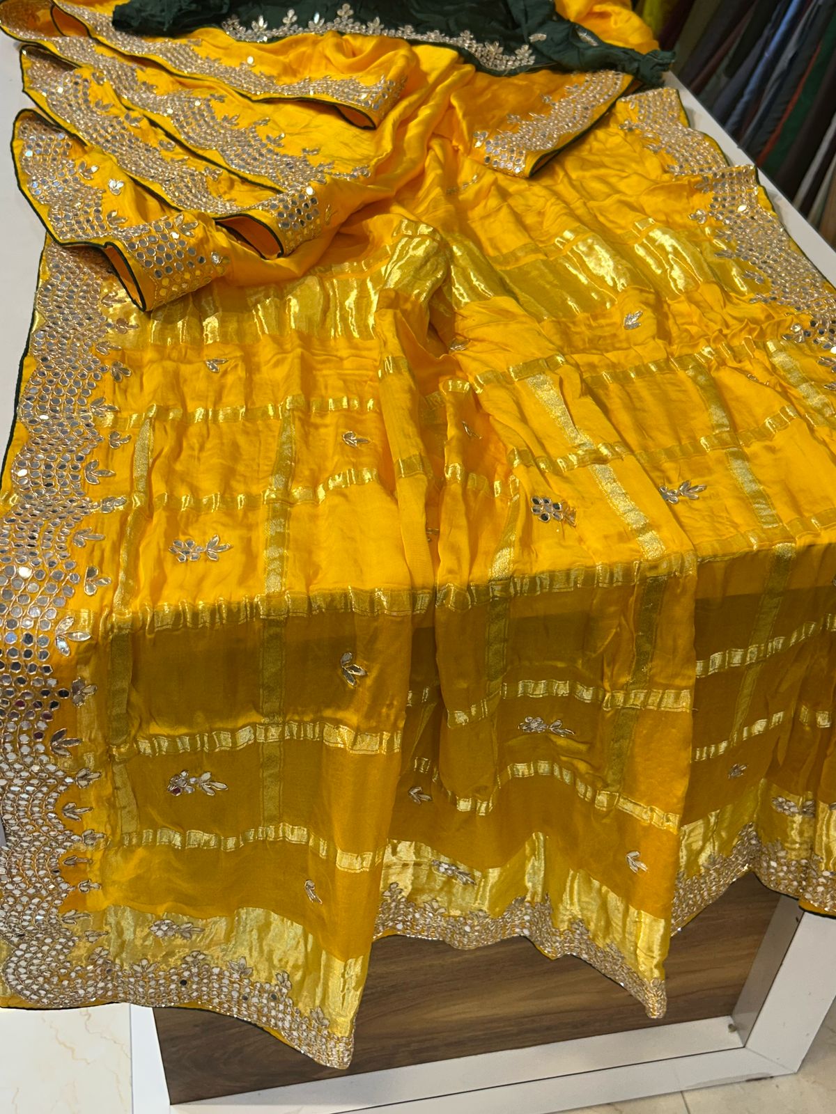| Product Description | Designer Pure Modal Silk Saree In Golden Yellow With Pally Chex And Beautiful Mirror Work These Sarees Are Made With Pure Silk That Has Not Mixed With Other Material. They Are Soft, Light And Airy. These Are One Of The Most Expensive Saree Fabrics |