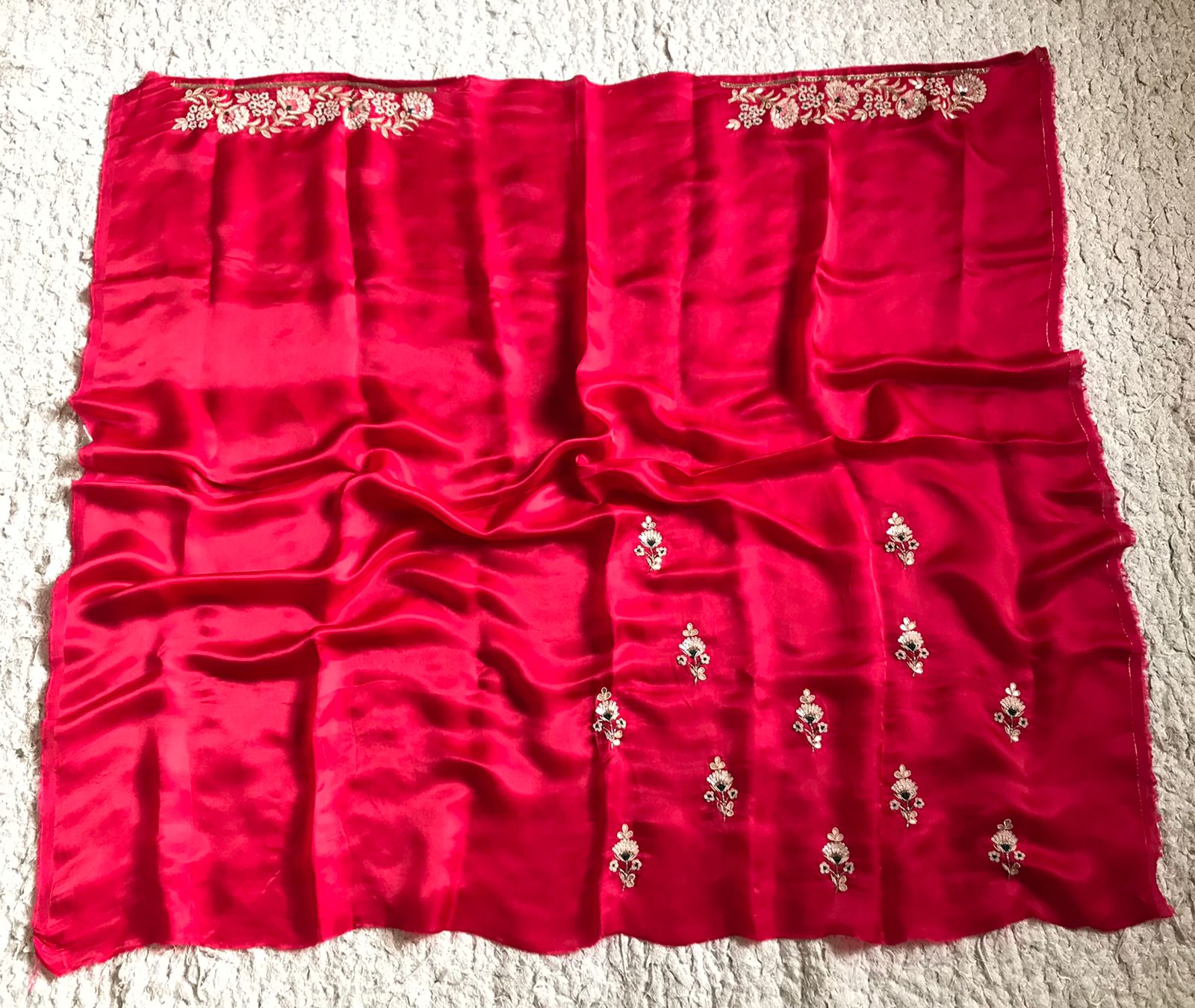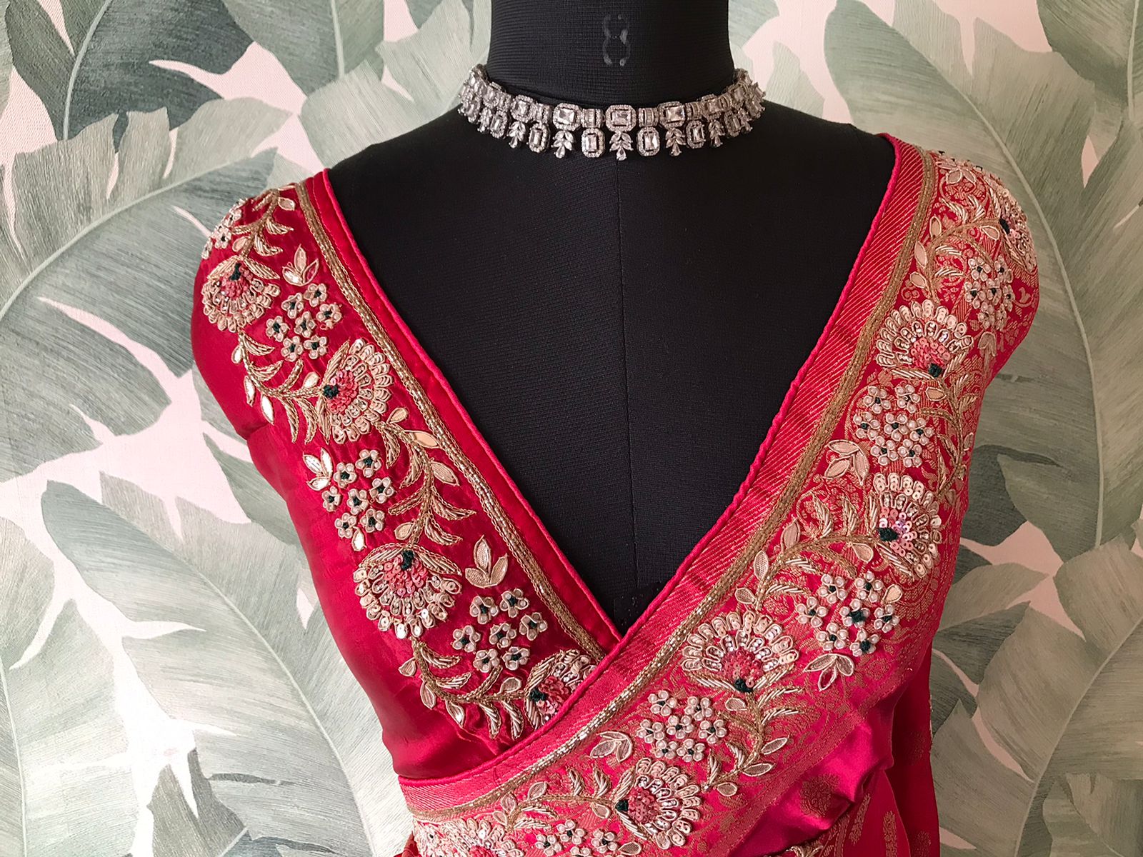 Banarasi Satin Organza Silk Zardosi Saree In Red. Comes With Stitched Blouse