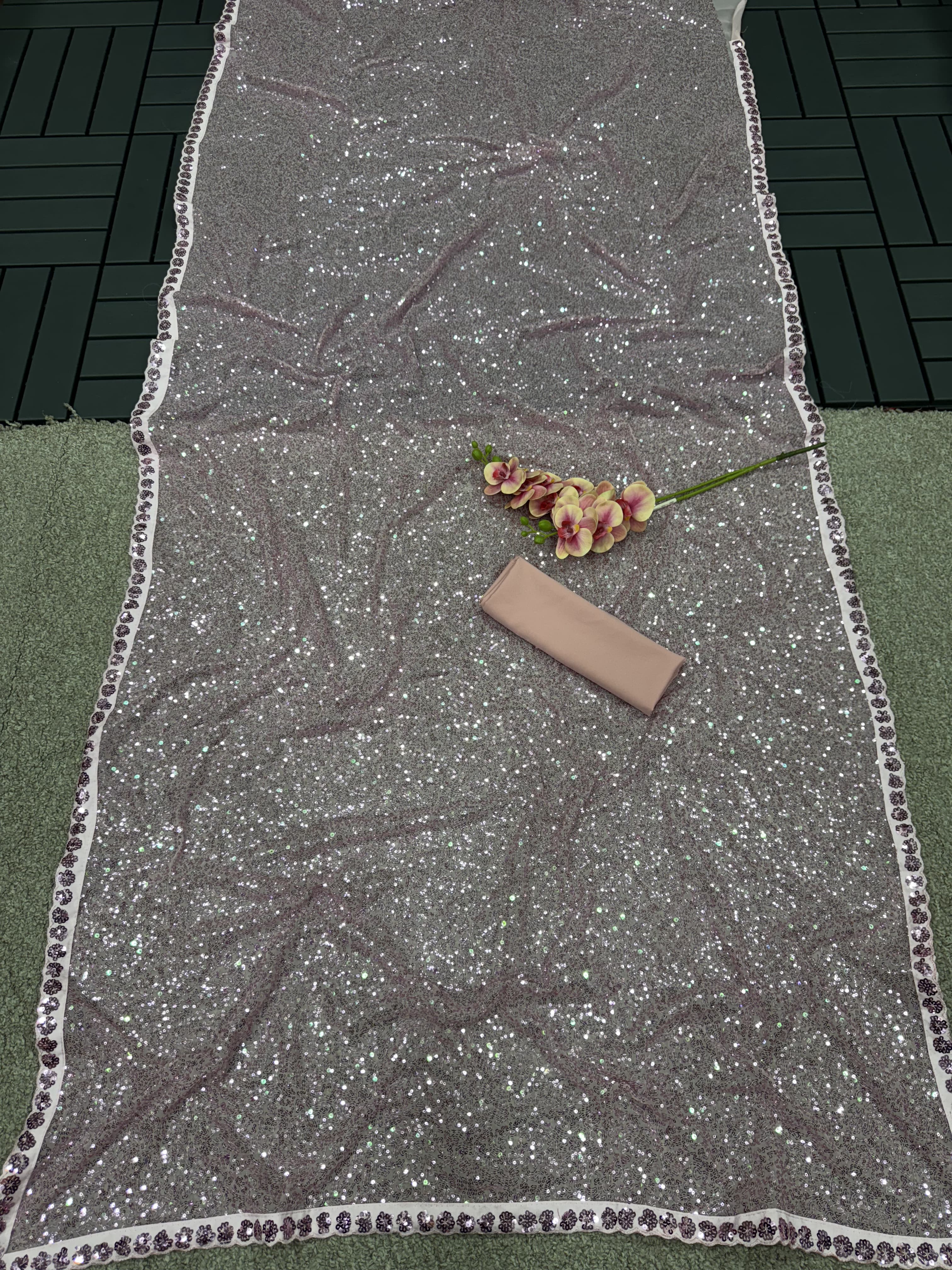 Blush Pink Beautiful 5MM Sequence Embroidery Cutwork Lace Border In Saree