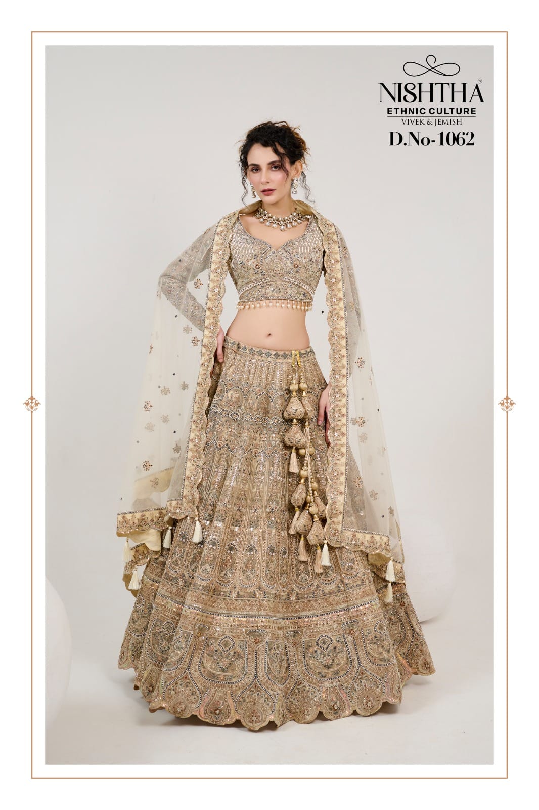 Designer Net Lehenga In Golden Beige With Embroidered& Handwork Blouse. Comes With Net Duppatta