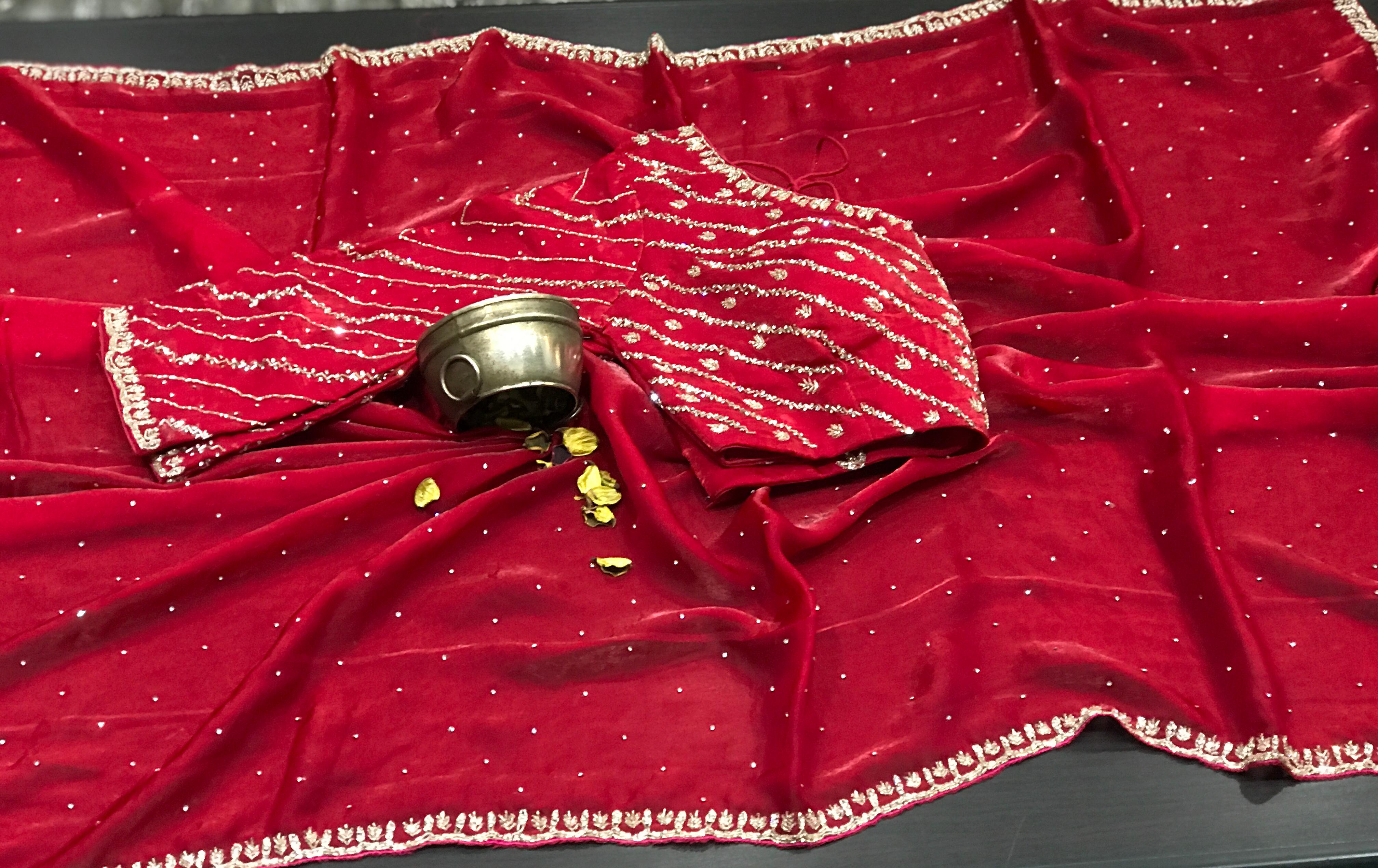 Fendi Silk Saree Is A Luxurious, Modern Take On The Traditional Indian Garment, Known For Its Smooth, Glossy Fendi Silk Fabric That Drapes Beautifully, Offering A Lightweight Yet Rich Feel, Often Featuring Intricate Embellishments Like Sequins, Stones, Beads, And Threadwork On Borders And Pallu.