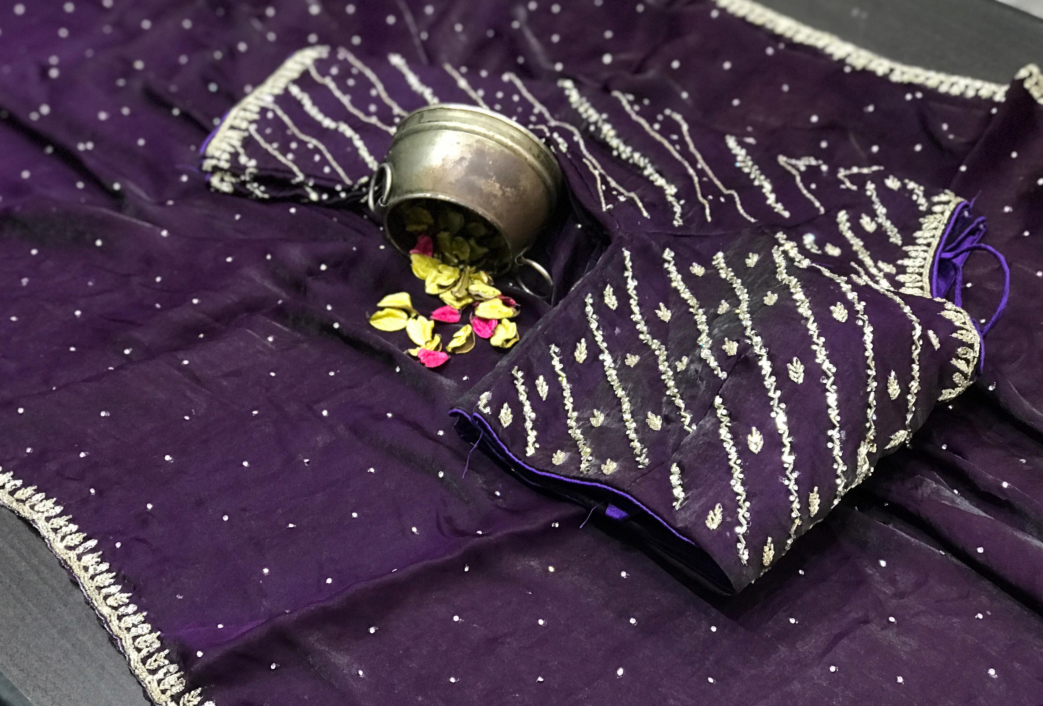 Fendi Silk Fancy Saree In Purple. Comes With Stitched Blouse