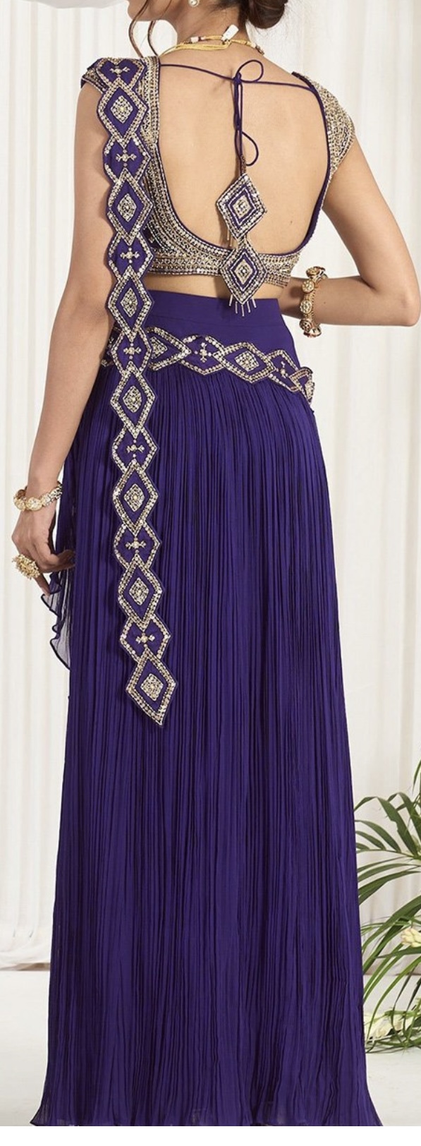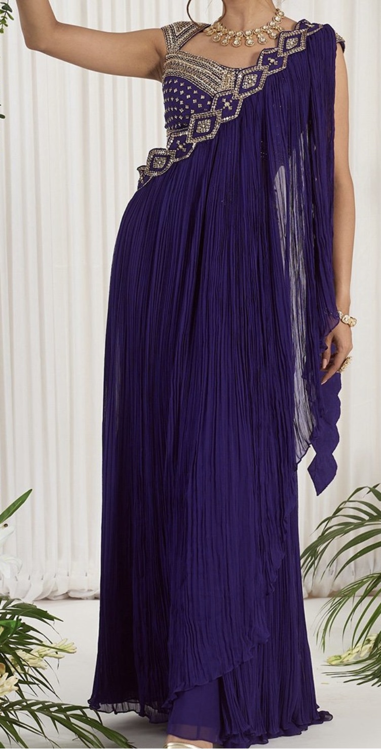 Indowestern Pure Georgette Sequin Embroidery Ready Wear Saree In Purple