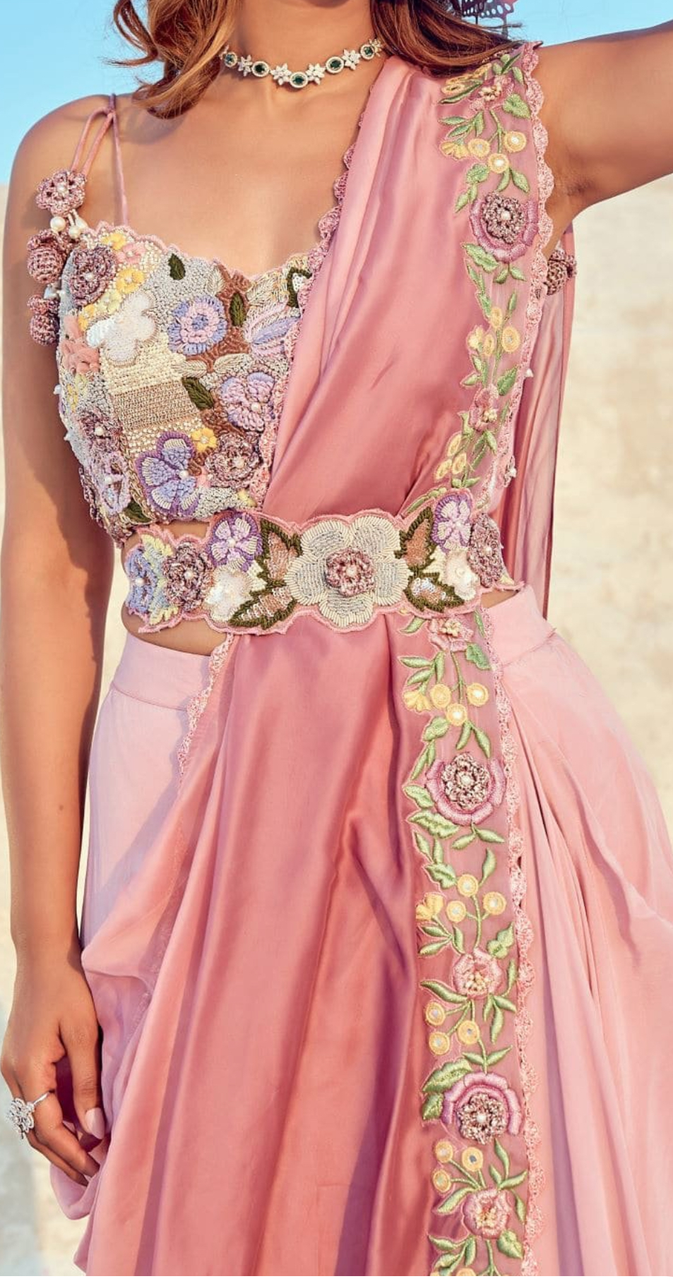 Ombre Peach Belted Poly crepe Designer Indowestern Saree