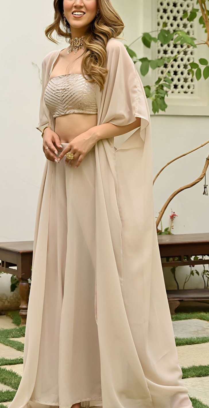 Polyester Skirt -Top With Shrug In Beige