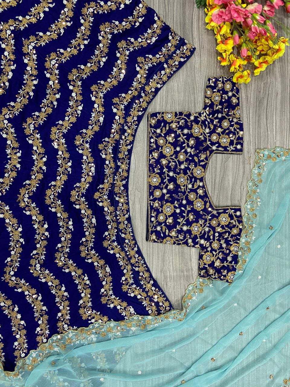 Premium Chinon Silk Embellished With Beautiful Embroidery Work ,Coding & Heavy Sequins Work Lehenga In Blue