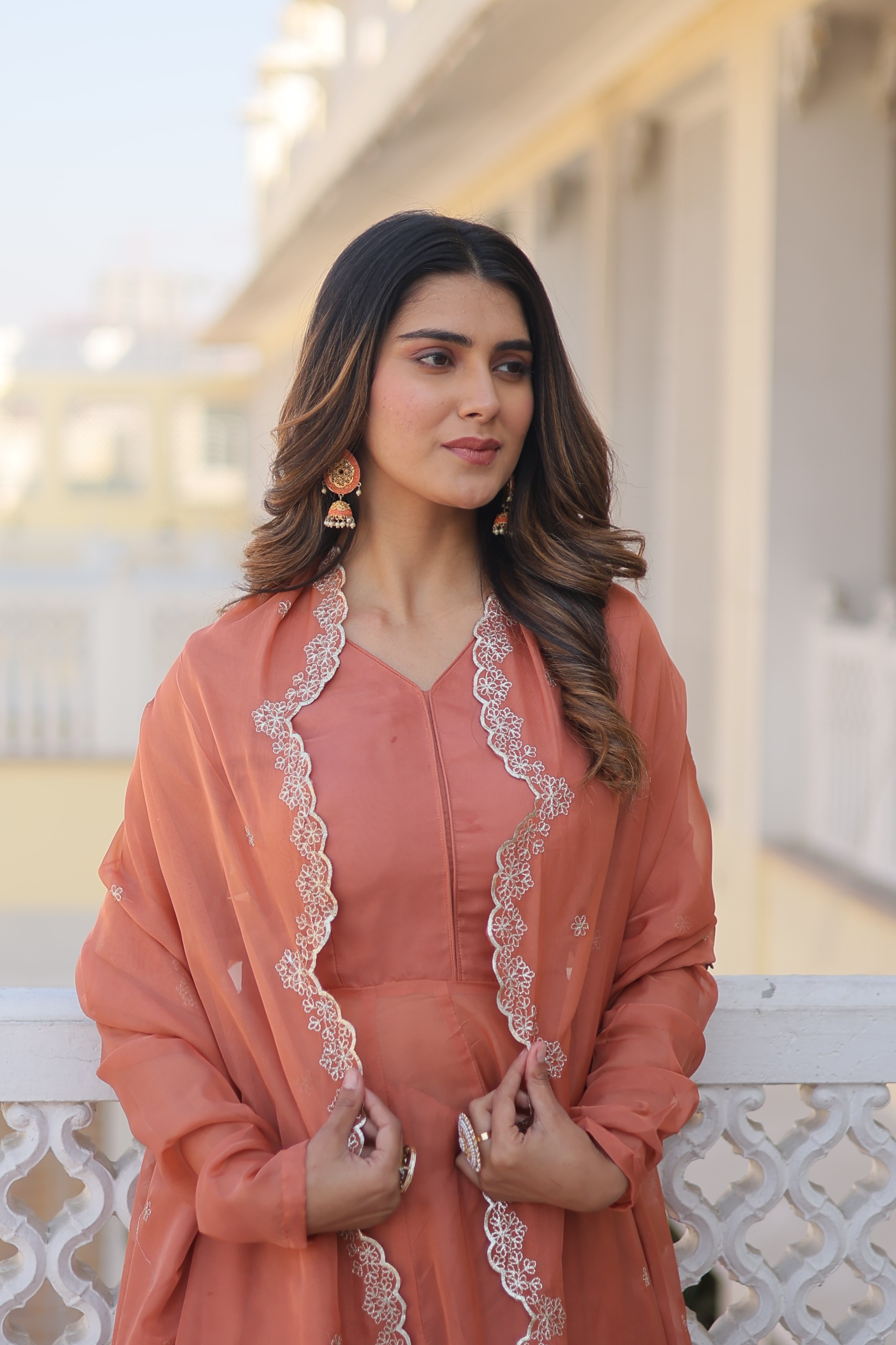 Premium Readymade Kurti With Pant & Duppatta In Peach Colour