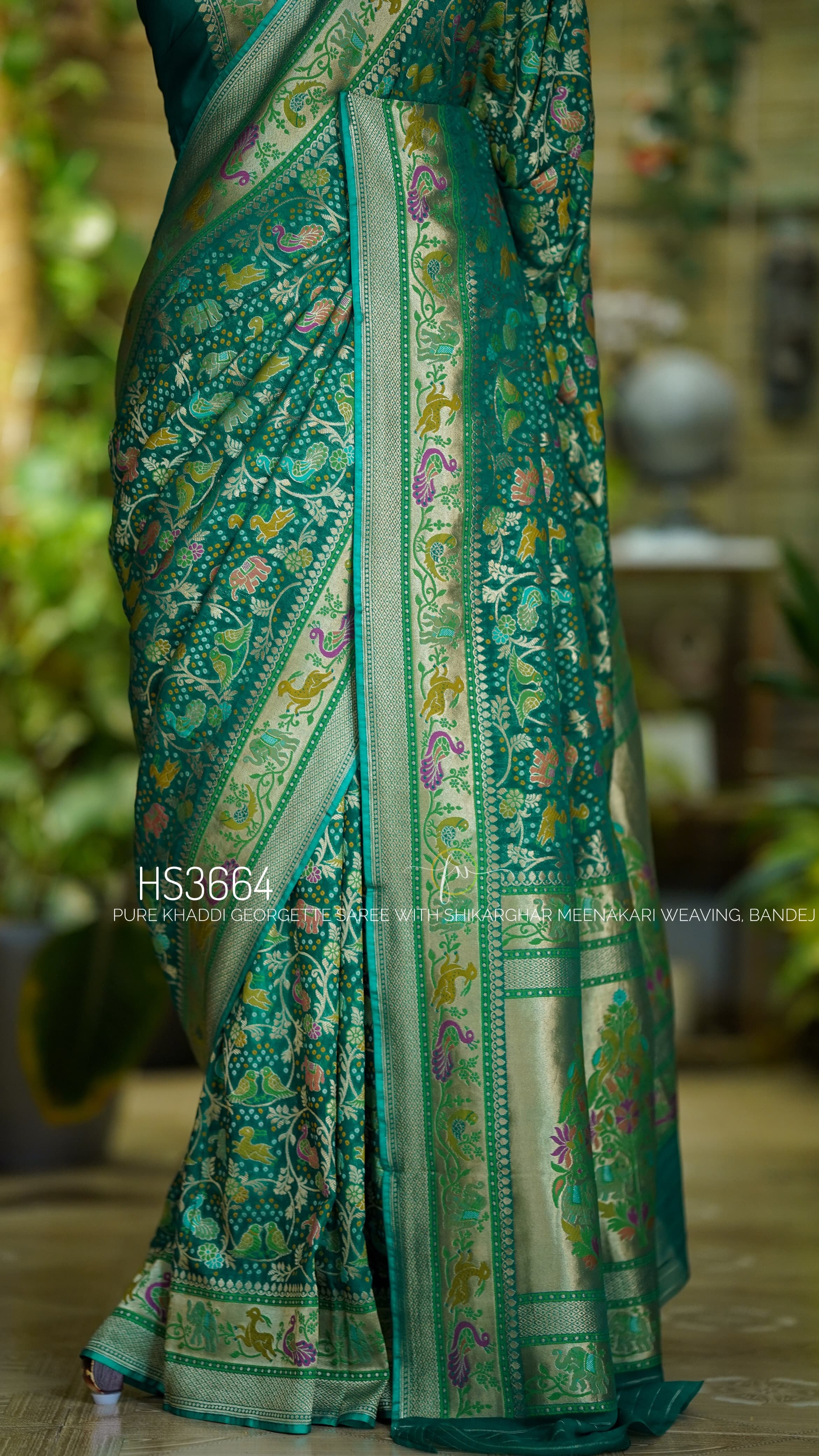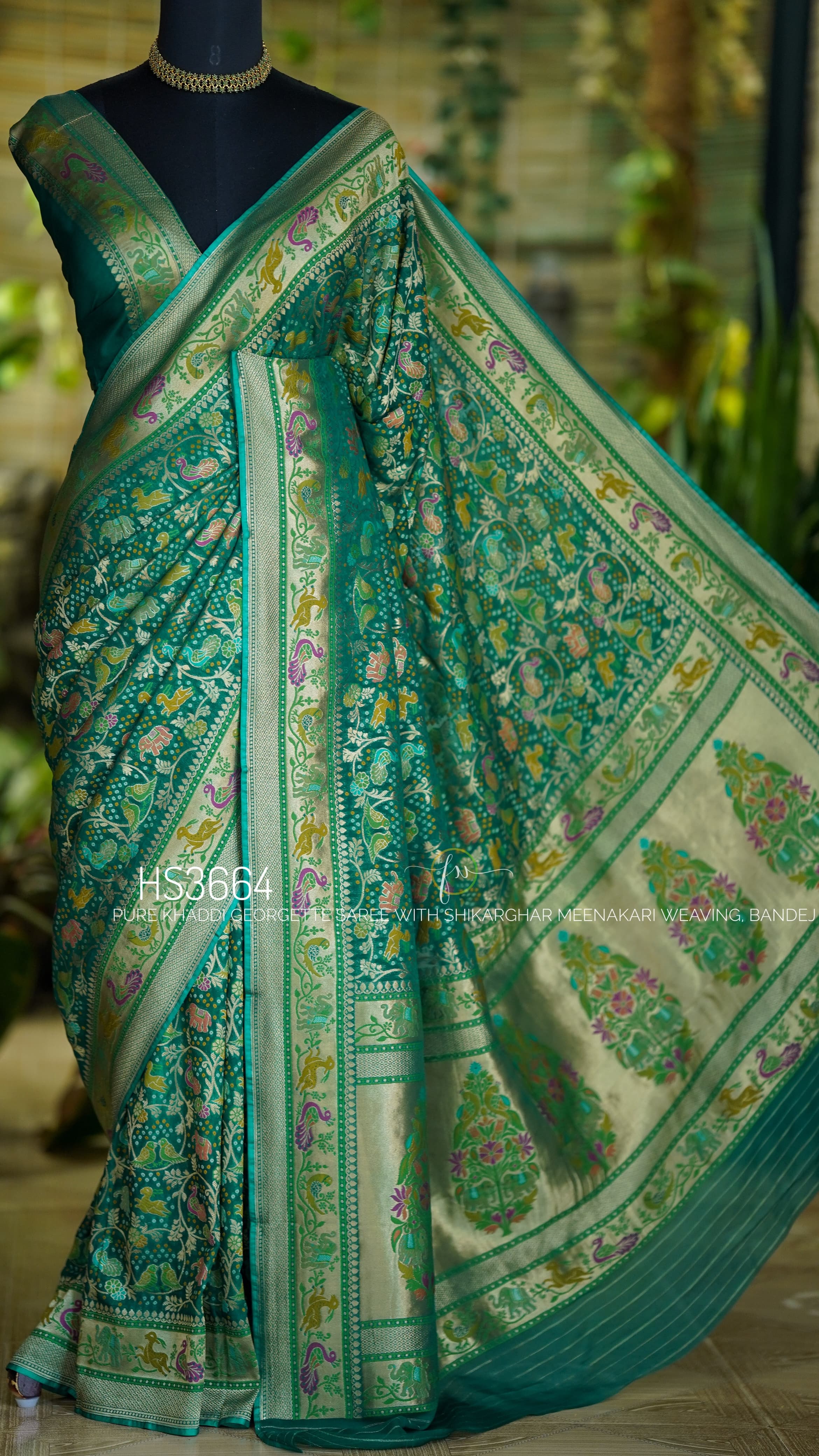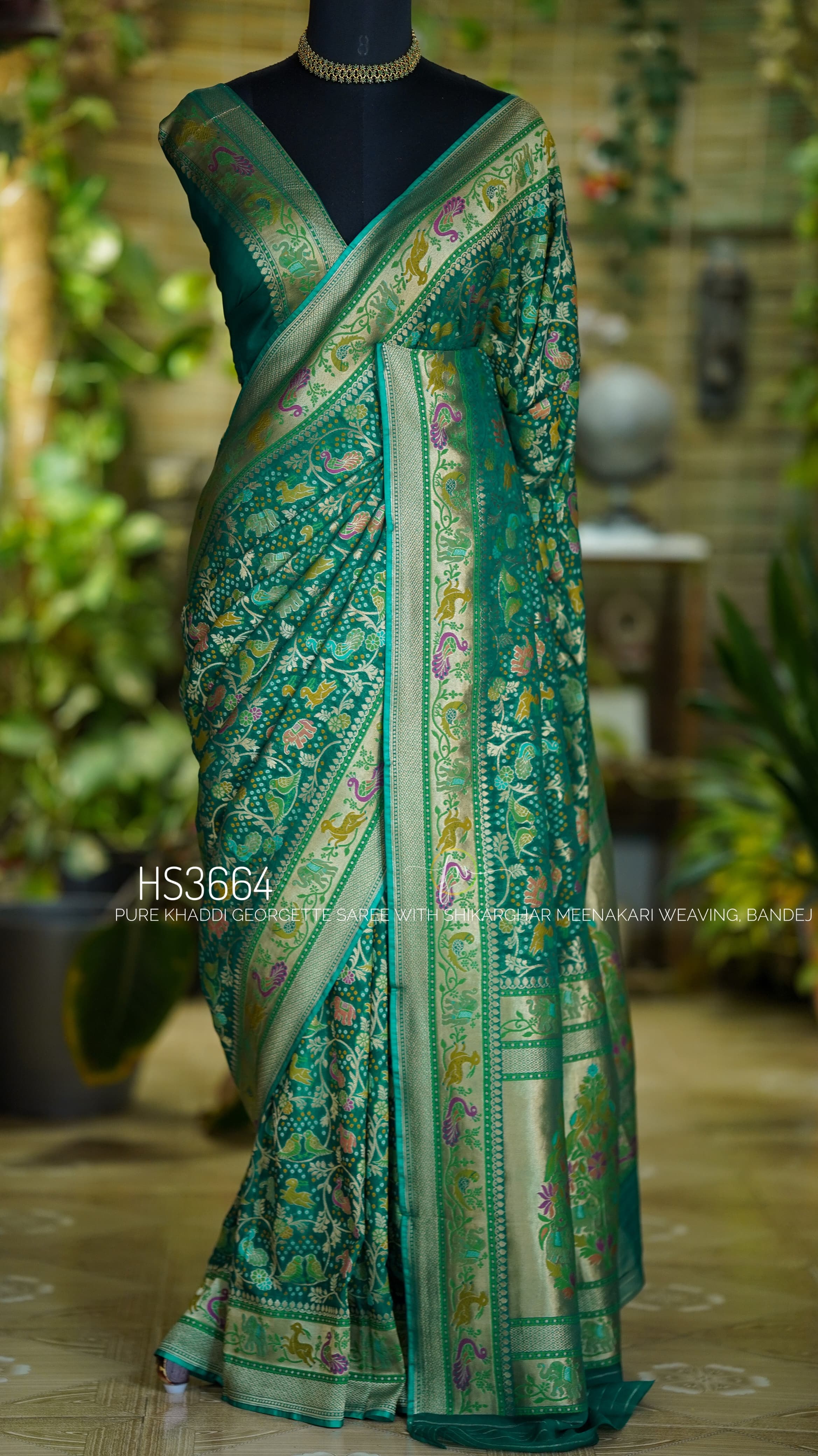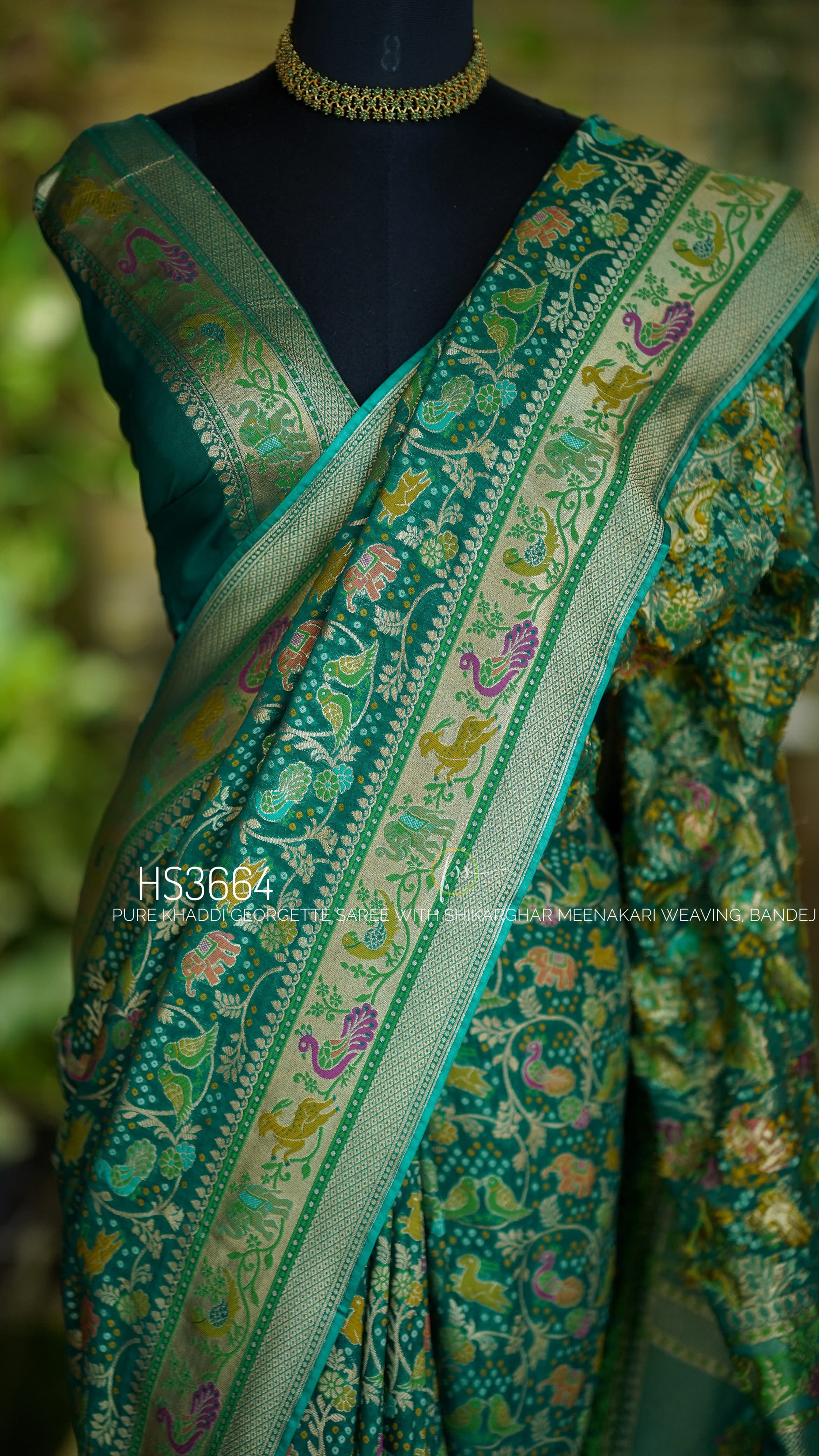 Pure Banarasi Silk Georgette Saree In Green With Stitched Blouse