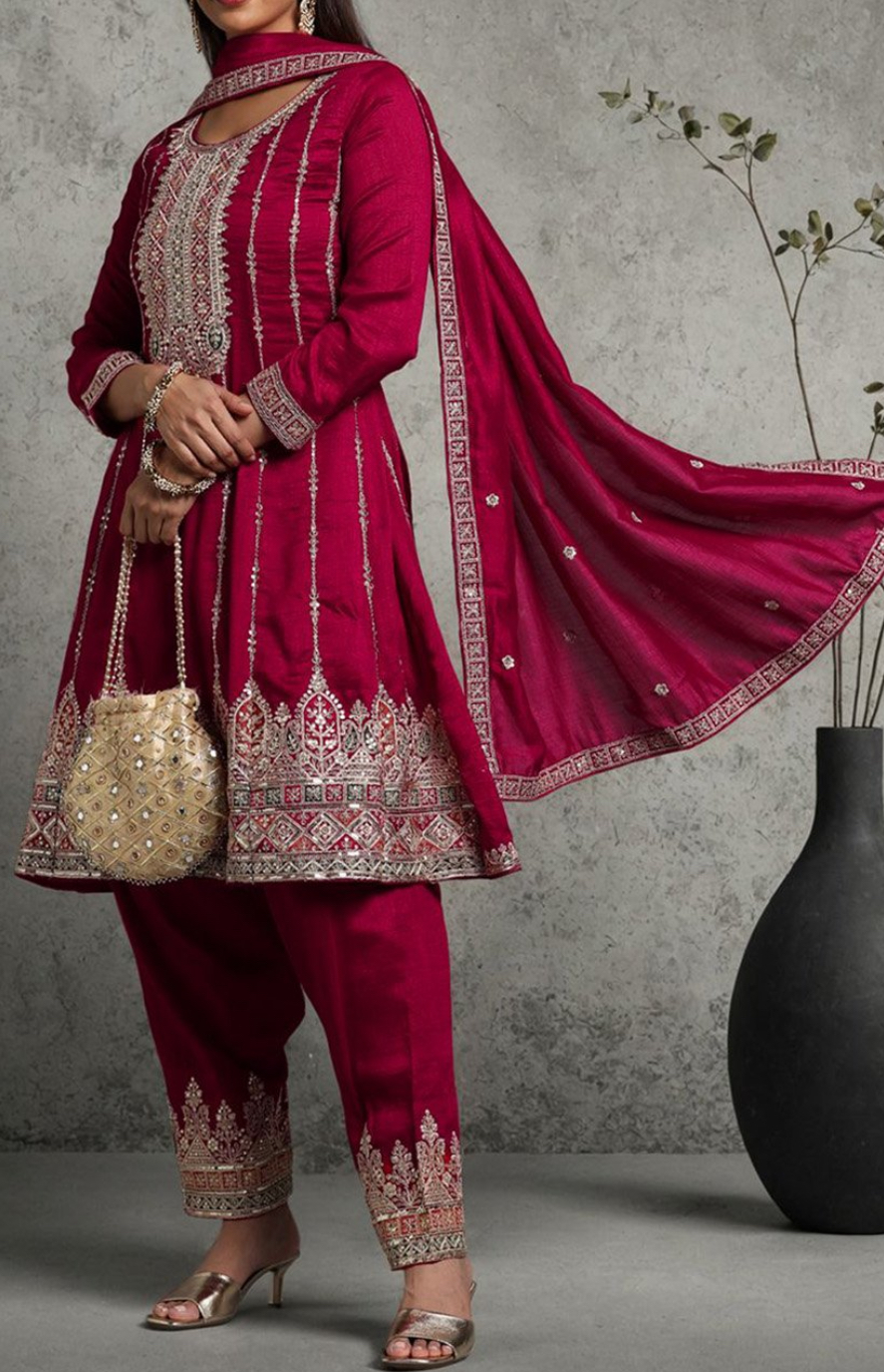 Silk Blend Velvet Designer Patiala Suit In Burgundy