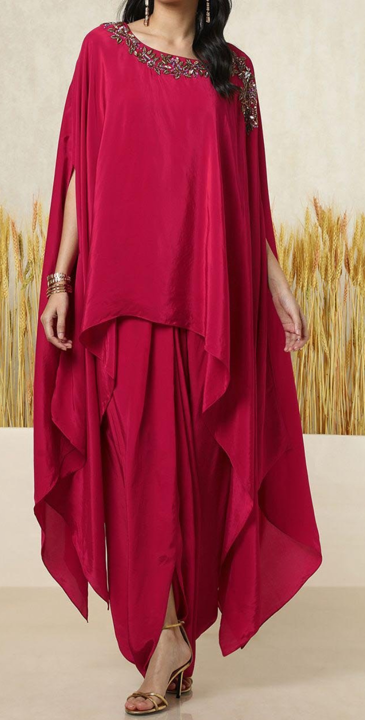 Viscous Rayon Indowestern Dhoti Kaftan Top In Raspberry Pink |